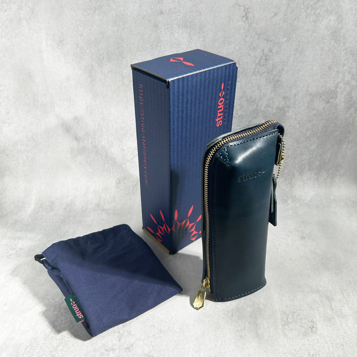 日本を代表する皮革・栃木レザーを使用。ピット槽による植物タンニン鞣しで、染色後にオイル・ワックスを入れています。ヌメ革の高級感が漂う仕上がり。光沢感がます黒色のエイジングはケースへの愛着を深める事でしょう。また、高級ファスナー・YKK"エクセラ"を採用することで滑らかな開閉を実現しています。留め金具は真鍮製のSTRUOオリジナル。味わい深い経年変化が期待できます。